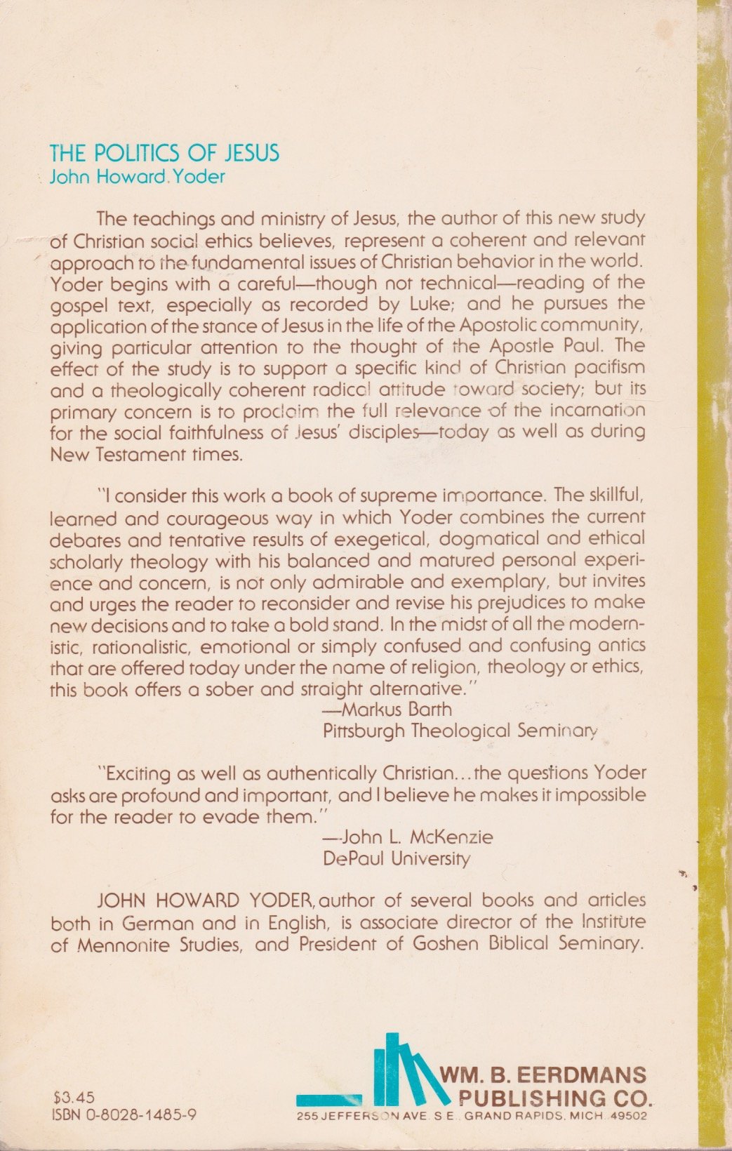 Politics of Jesus: Vicit Agnus Noster John Howard Yoder